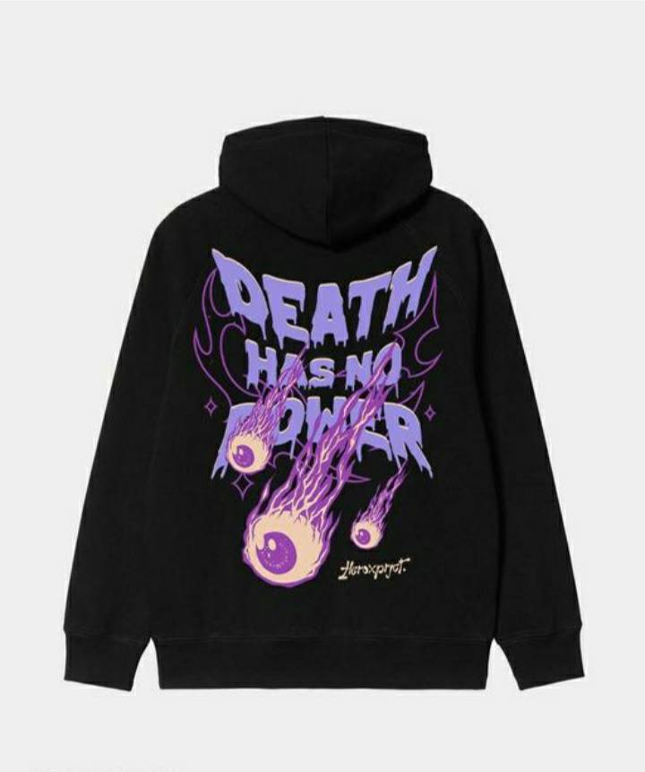 This black heavy material good quality hoodie with the unique design death has no power printed in large size at the back will make you the show stopper wherever you go.